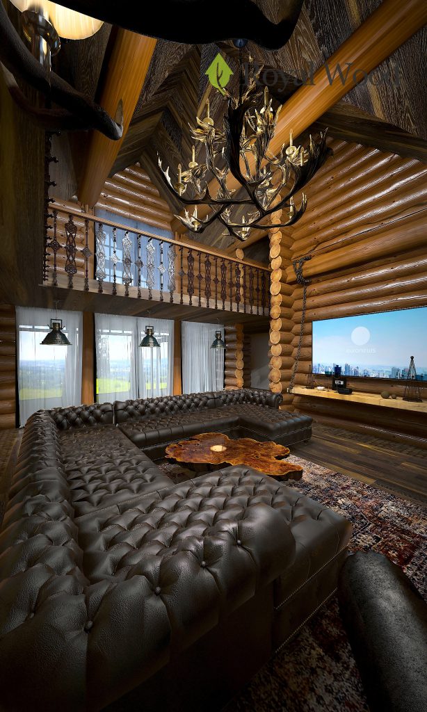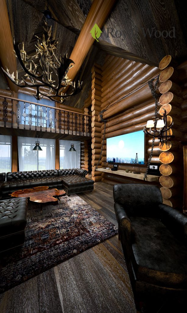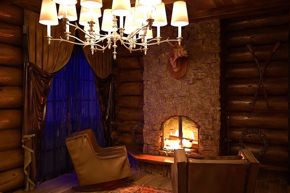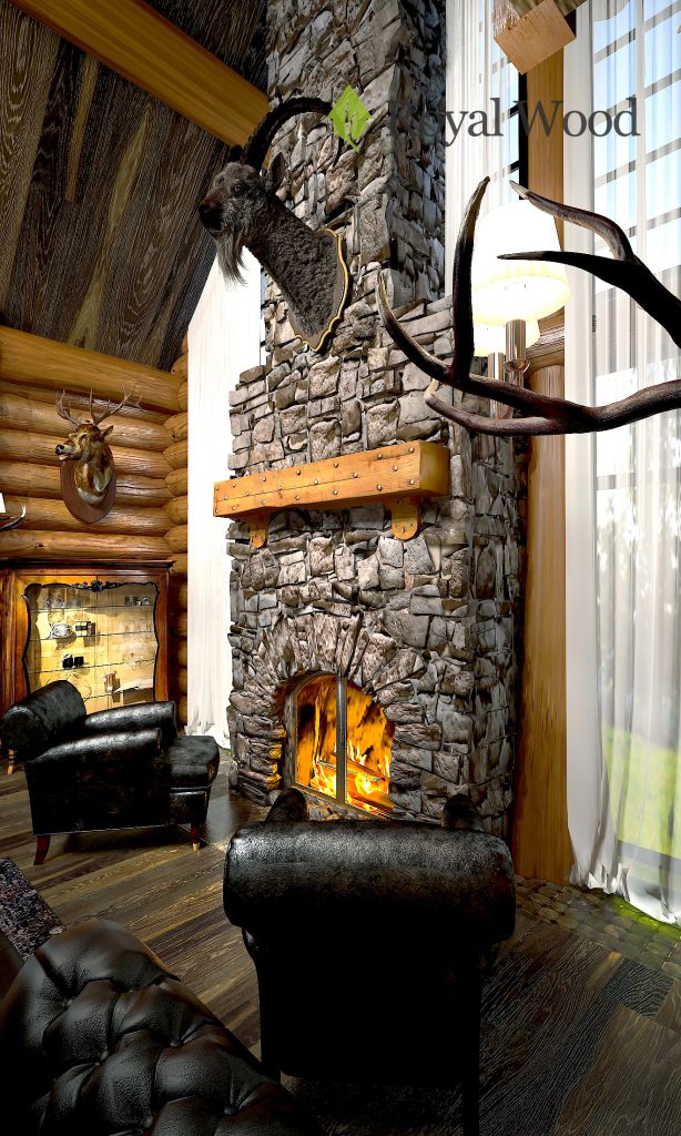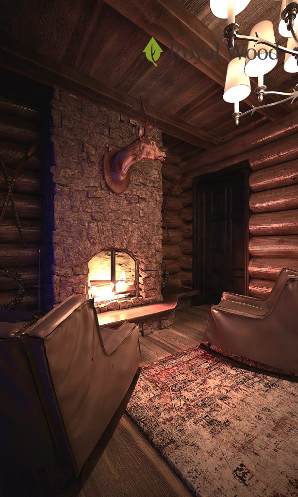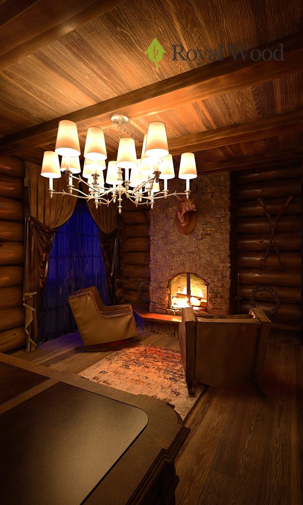 Комплекс разделен на два крыла. В левом крыле расположена зона отдыха и развлечений для большой компании. Это большая гостиная зона совмещенная со столовой. В центре гостиной- массивный камин, сложенный из натурального камня. Из гостиной гости попадают на просторную крытую террасу с зоной барбекю.