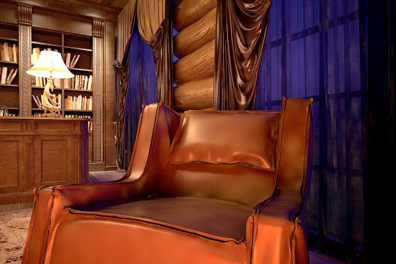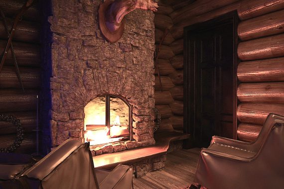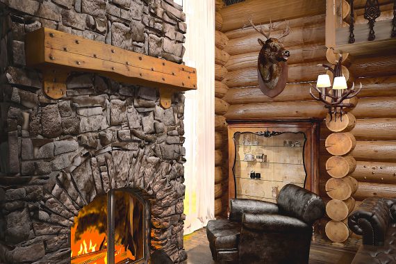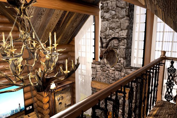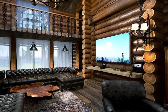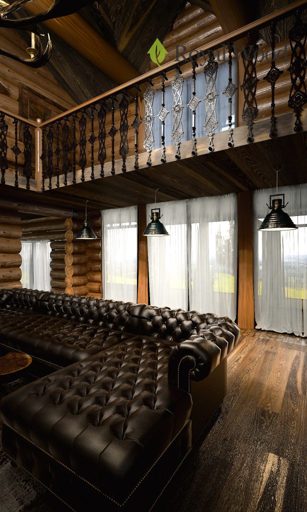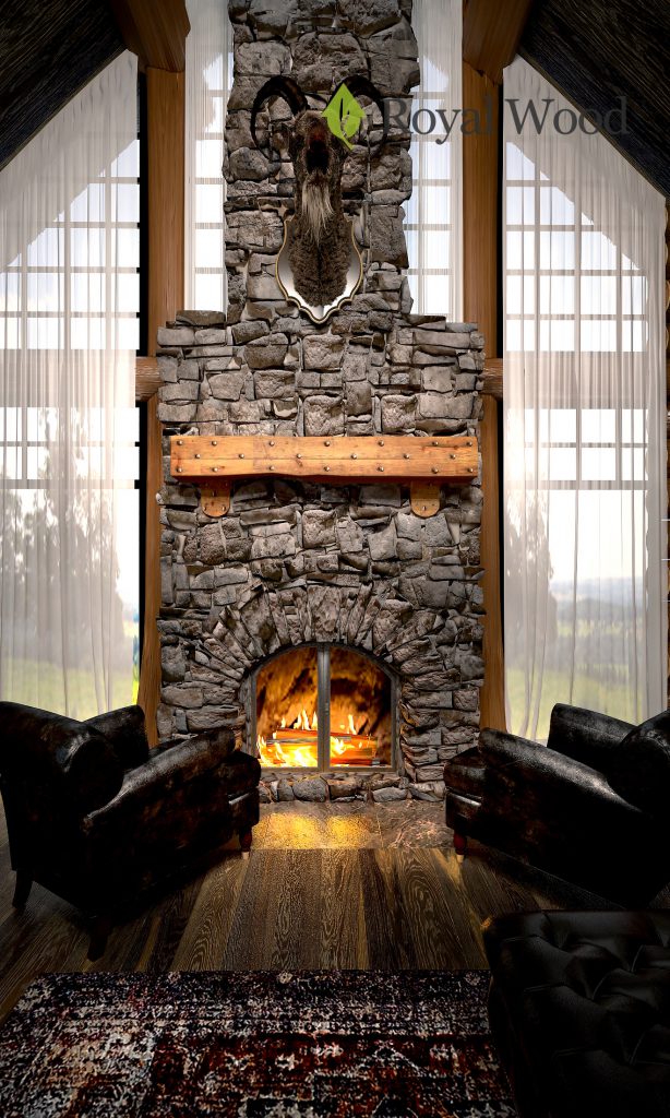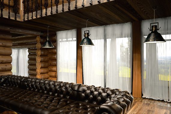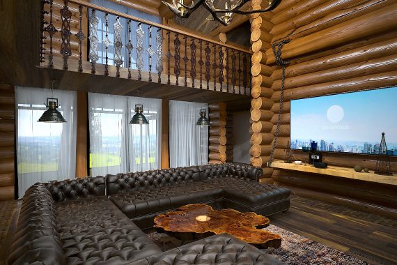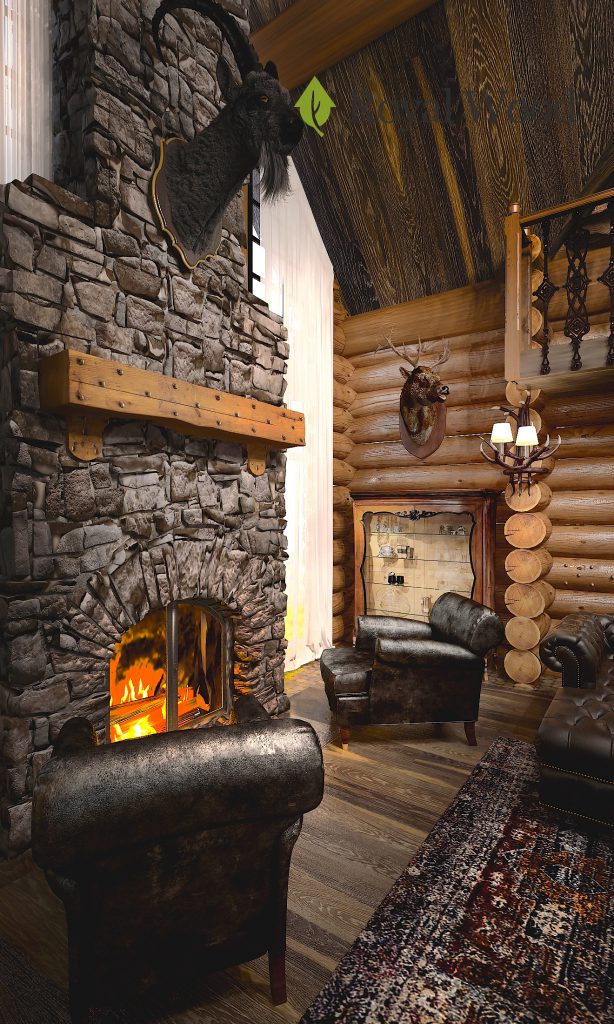 Комплекс разделен на два крыла. В левом крыле расположена зона отдыха и развлечений для большой компании. Это большая гостиная зона совмещенная со столовой. В центре гостиной- массивный камин, сложенный из натурального камня. Из гостиной гости попадают на просторную крытую террасу с зоной барбекю.