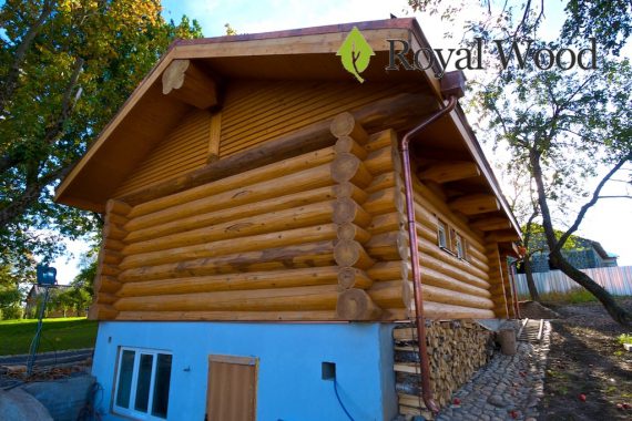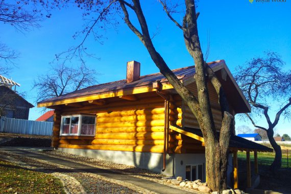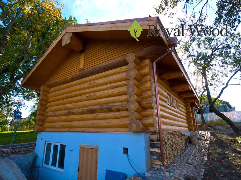 Баня проектировалась на большую семью из 6 человек с цокольным этажом. Сруб заказывали из красного кедра, канадского производства. Выбрали этот материал за счет его великолепного вида, идеального качества рубки и за счет того, что баню из кедра можно было начинать эксплуатировать сразу же после монтажа, не ожидая естественной усадки. С момента заказа сруба до монтажа бани «под ключ» прошло всего 6 месяцев. Баня сразу же ввелась в эксплуатацию. Мы контролировали процесс усадки бани в течение года.
