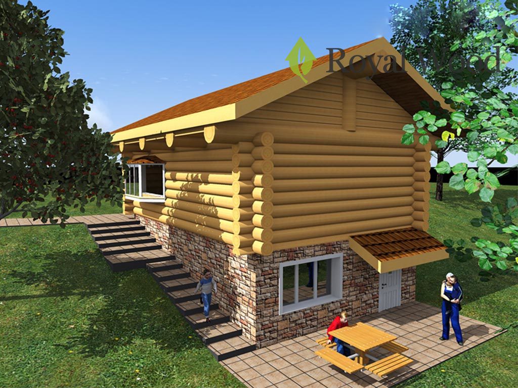 Проект этой деревянной бани разрабатывался архитекторами компании Royal Wood совместно с одним из самых именитых парильщиков в Беларуси, знающим все о хорошем паре и необходимых условиях для правильного парения. Баня проектировалась для отдыха семьи, состящей из 6 человек. Изначально, баня планировалась одноэтажной, однако, в процессе работы, у бани появился цокольный этаж, благодаря крутому рельефу участка. В цоколе бани расположена постирочная и небольшая кухня, а также техническое помещение.