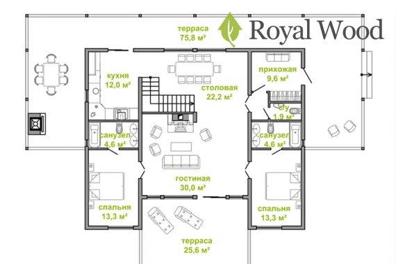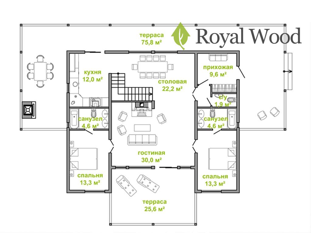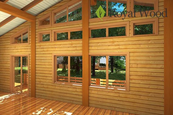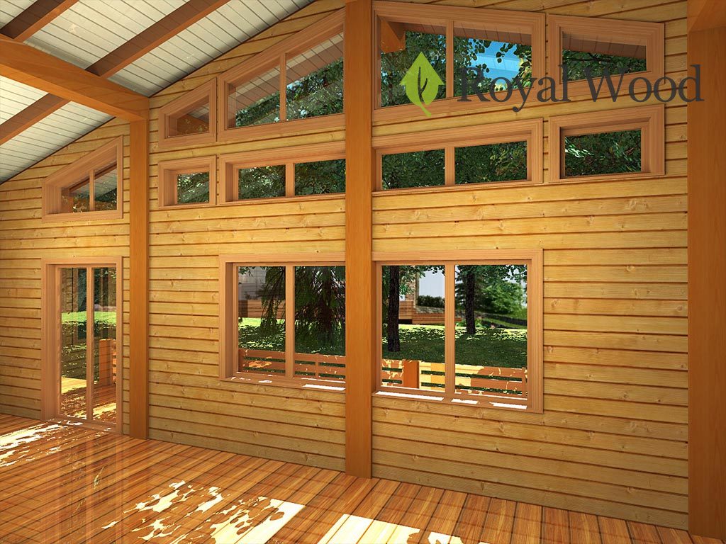 Архитекторы компании «Royal Wood» сразу предложили супругам строительство дома по безусадочной канадской технологии post and beam или timber frame. Разница между технологиями состоит лишь в том, какой тип бруса используется. Для каркаса post and beam используется круглый кедр диаметром от 36 до 50 см, для timber frame — брус сечением 30х30 или 35х35 см.
