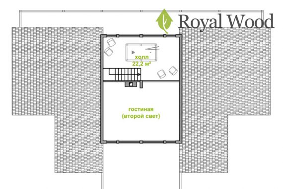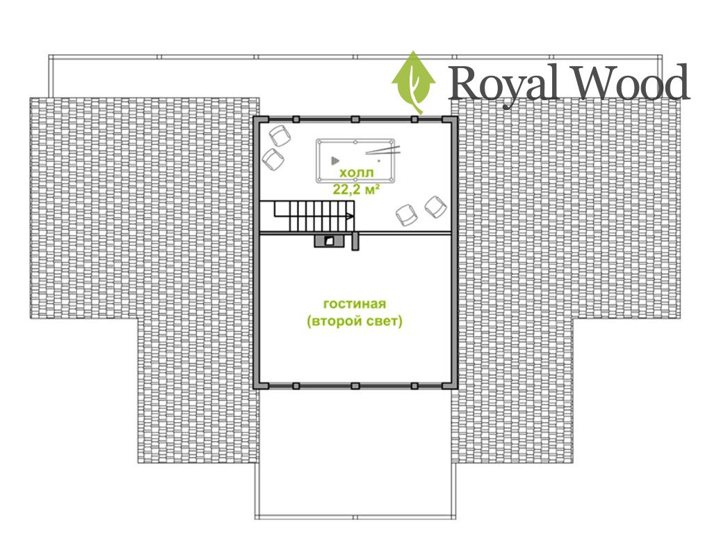 На мансардном этаже расположена гостиная с баром и бильярдная. Этот этаж выделен для отдыха и развлечений молодой семьи.