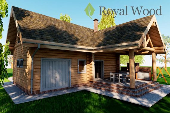 Предлагаем вашему вниманию проект деревянной бревенчатой бани с мансардой и гаражом — мастерской площадью 120м².