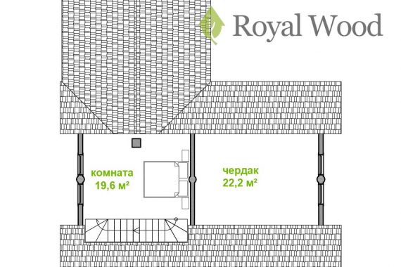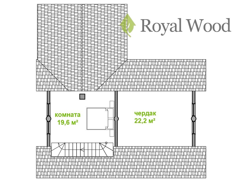 На мансардном этаже расположена спальня, в которой можно разместить гостей.