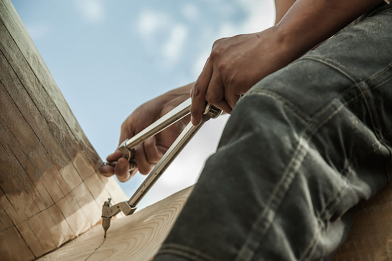 Мы сами отбираем древесину для каждого проекта. Работаем только с зимним лесом, предпочтение отдаем карельской сосне и сибирской кедровой сосне. Возраст древесины, которая берется в работу составляет не менее 120 лет, а минимальный диаметр бревен — 30 см. Нам очень нравится работать с домами ручной рубки большого диаметра. Максимальный диаметр бревен, с которыми мы работали составляет около 1,5 метров!