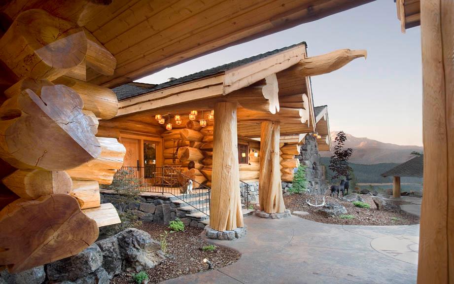 Размеры горизонтальных балок и элементов стропильной системы подбираются исходя из нагрузки, которую они должны нести. Все структурные элементы связываются между собой, вес равномерно распределяется между балками и колоннами и также равномерно ложиться на фундамент. Строительная эстетика превосходит инженерные требования и мы, зачастую, выбираем бревна большего диаметра, чем необходимо, для создания массивного внешнего вида будущего дома.